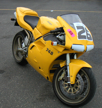 I haven't really ridden very much lately. The 900 in California had seen almost as much use as the 748, and that isn't much. So being rusty I took it relatively easy. Still, it was a lot of fun, as my helmet cam video shows. I really need to do at least three bike track days a year to keep progressing. It has been too long. Not too many left this year but something to keep in mind for the future... 11/08/02 Well, the 748 hasn't seen that much use this year. Only 350 miles, half of it on the track. I resolve to do better next season. In the meantime, after an oil change, chain lube, and general clean and wax, the Duck is now back in its winter home...
