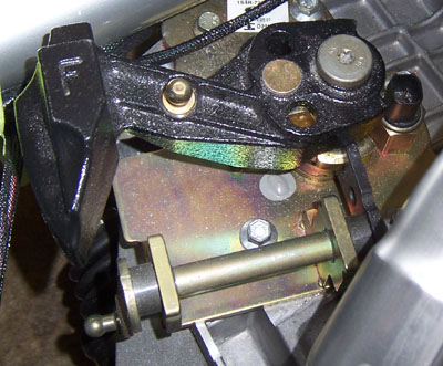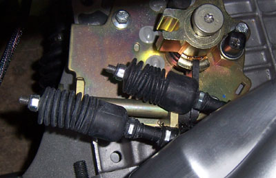 The chrome bolt head is a bit hard to see in the picture but basically it JUST fits. The spring barely touches the bolt but I can rotate it on the shock body so that the coils won't contact in normal use. Ultimately though I should just redo the engine mount properly. I already have it redesigned, just need to have one made. Not the highest priority at the moment since I have a workable solution. Next on the agenda is the shifter linkage. The cables come in at the wrong angle so I need to either do something complicated or alter the existing setup. To that end I pulled off the counterweight (it touches the frame in 1st, 3rd and 5th anyway) and now I need to figure out what to replace it with. Shouldn't be TOO difficult. Rotating the shaft goes with moving the shift lever sideways. The part of the linkage that moves when the lever goes forward and back is going to be trickier. We'll see.