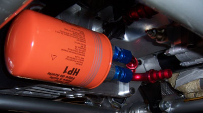 12/16/06 A few days ago I was ordering some parts and realised I need an oil filter and a remote mount. No problem. Visualised the best mount configuration and ordered that, then saw 'Fram Racing Filter' and thinking it's just the ticket added that to the order as well. So yesterday everything shows up and this thing is HUGE!