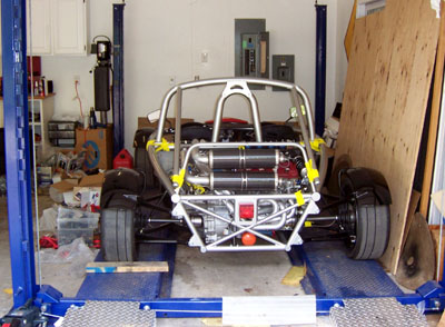 It's really starting to look like a car now. Every time I go through this (first with the Westie, then the dp1 proto, and now with Bikini) I"m reminded just how much there is to making a functional vehicle. And how everything is connected to everything else. On a final note for today, the airbox showed up. Looks sweet! It will be quite easy to make a half of it for any Hayabusa-powered car, so if you have one and want an airbox like this drop John a line through his site. It will likely poke through the hood on most 7-like cars but with something that looks like this you'd want it to!