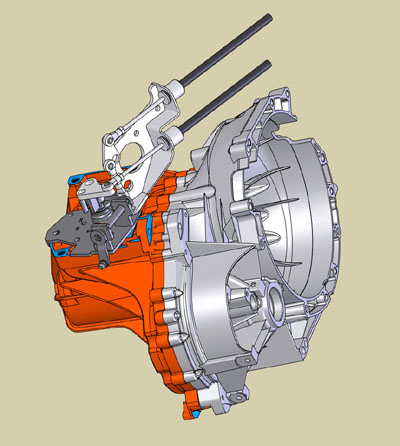 There's even some room to work on the Atom, kind of. It'll have to do in the near term. I'm glad I'm into small cars! The dp1 isn't going anywhere anytime soon but it's just as well since the next phase of testing and development primarily involves Bikini. The mold needs to be cleaned up too so that'll be easy with it sitting on its side like this. Whew. 08/14/07 OK, this is the honest push to get this done. To that end I finally figured out a shift linkage arrangement that I'm somewhat happy with - it's out for quotes now. It was a real pain and there is a possibility that it might flex in one direction but this is all that space will allow. Hopefully I won't have to redo it.