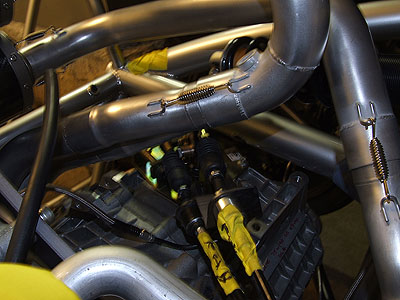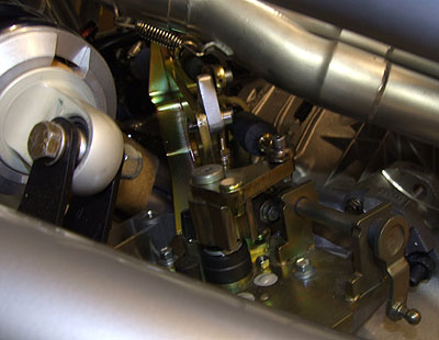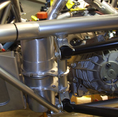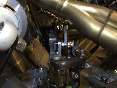 We'll see how it works. Time is running a bit short so I'm setting aside other projects as much as possible and just working on this one. A lot of minor fabrication remains but I know it can be done. After some discussions with John Hartley we came up with a really cool airbox design for the motor (well, I made a suggestion and he did all the hard work :) so that should be showing up shortly. It should be a treat and I wonder why at least some manufacturers don't do it this way - would be really cool on engines like the BMW V10. You'll see what I mean when I post the pictures. 08/21/07 The shifter is fabricated, along with a couple plumbing bits. Installed it and lo and behold the thing works. Clearance to the exhaust is really tight but that's an ongoing theme with this car and clear it does. The rubber boot probably won't live too long unless I come up with an effective shield which should be doable. There are a couple minor tweaks that I need to make and I'll try to get it plated this week.