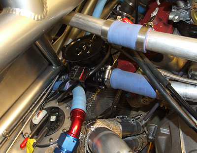 The oil plumbing is done except for hooking up pressure sensors on the supply and scavenge sides (I need to monitor scavenge pressure because of the unorthodox way I'm doing that section). The gauges are here, too. The water plumbing took a few tries but I finally have a solution I'm reasonably happy with. Yes, as with everything else, clearances are minimal.