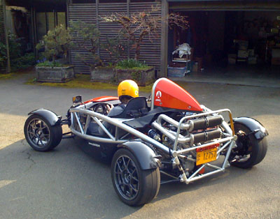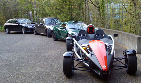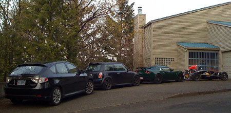 04/25/08 At the end of the day the sun was out. When this doesn't happen very often, as has been the case of late, one really learns to appreciate the opportunity and an effort is made to make the most of it. So we did, with a nice Bikini run. Wore helmets this time and it really makes a difference. So the car is exactly like a motorcycle - you need to dress the same way and with proper gear it's manageable. M got to drive it on some twisty roads and later when we dropped by Larry's house he drove it too. He liked it :)