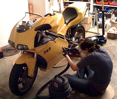 A passenger would even it out just about perfect. This should do for the moment. Now I need to get rollbar modified, a few electrical and oil-related loose ends to wrap up, a few more miles on the motor and then it should be ready to hit the track. Shooting for May 23 Lotus club day. While I was messing with the Atom M was installing the frame sliders and the new battery on the 748. She did it herself without any help from me including cutting the fairinigs. I know, I'm a lucky guy :) After this she went to a store, bought the ingredients and made awesome oatmeal and raisin cookies, blasting Marilyn Manson on the stereo all the while. I must be dreaming.