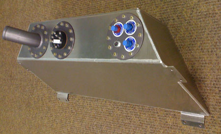 Lesson learned from all the earlier iterations, the new can has two -12 vent lines coming into it and one -8 drain line going back to the tank. All I can say is this better work :) For the moment we've put the OEM uprights back on. It's frustrating to not be able to run my new design but in about a week that'll change. Hopefully the stock ones will last until then. It's raining now anyway so probably won't get to drive the car in the next few days. 04/10/09 The first day of Karl's visit also coincides with a number of parts showing up. The fuel cell is the big one. Fuelsafe did a good job on it, it appears to be exactly to print and well made.