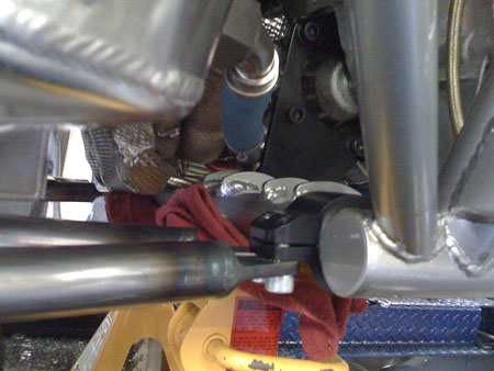 According to M they were very bright orange before. The shielding really works wonders - the fuel cell wall wasn't even warm. However in one spot on the frame about 2" from an unshielded header there were a couple plastic zip ties. They just melted and fell off. No real damage though so my overall heat management strategy seems pretty sound and passed this rather extreme test. After this we decided to limit test runs to 15 seconds under power (plenty with the wideband O2 sensors) and also pointed two large fans at the engine compartment.
