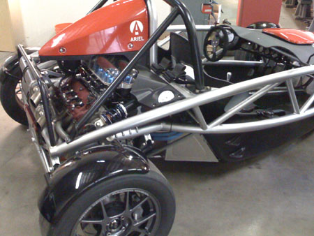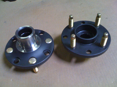 Next on the list is installing the just-fabricated belt cover and hooking up the alternator so we can go for a proper drive. Today's blast around the block was made without alternator, just running electricals off the battery. The car is a beast - did I mention that? :) Wheelspin everywhere. Of course this is helped by the fact that I noticed I wasn't getting full throttle opening out of the available pedal travel (M's response was WHAT?!!). So this has now been rectified and after some puzzling but temporary misbehavior from the CPU when trying to recalibrate the stops all is better now. The fuel map still needs a lot of tuning but even so it's a very entertaining device. 04/17/09 Lots of progress today and part of it is on the Atom. The most exciting news is that the UK hubs finally showed up! So we'll be able to ship the existing orders in a couple of days (it takes a bit to put everything together). The parts do look pretty.