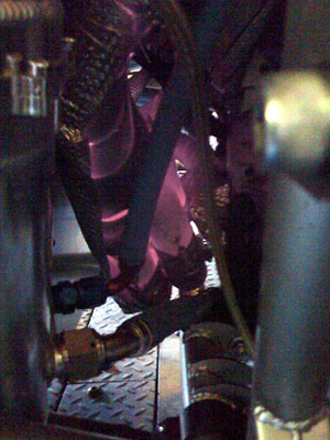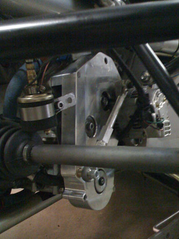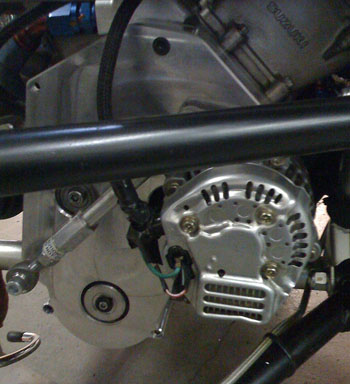 The second half of the belt cover is getting made so we rigged up the base half with a hookup for altenator belt tensioning. It works.