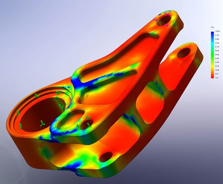 No wonder bellcranks and frames are getting bent. There is nothing I can do about this part of the geometry but I can at least provide more room for component clearance, which I did. The adjusted design still comes in at a minimum of 1.6 factor of safety with 1,600 lb loading on the pushrod. Weight actually drops to 0.6 lbs.