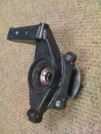 I'm still not completely decided on redoing the front uprights. On the one hand I really hate the idea of relying on the stock bearings and drive flanges. If I can actually use the new design on the dp2 and dp3 then it would be worthwhile. One concern I had about making an Atom-compatible unit is the lower balljoint. It is definitely better than using a rodend in bending like the UK cars, but I wasn't sure the retention method of this particular part would work in an alloy upright. In its normal application this balljoint does not carry spring loads although it is the right direction (pull type).