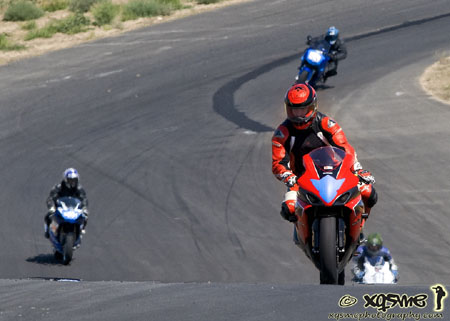 08/24/09 Our third trackday at ORP. This time the weather cooperated beautifully. M got to do a couple bike sessions and I was determined to run a bit as well. I started with the Atom - here's a video of a lap. This track ROCKS! As you can see from the clip, I'm just being conservative (and lazy :), using the power between corners in a point-and-shoot kind of way. The car easily has another 10 seconds in it, if I got some time to get more familiar with it and the track... As it is though, after a couple laps I once again got a mysterious misfire. Looking at the ECU logs it's crank sensor errors again. Having replaced the crank sensor (with a whole different type even) and the entire wiring harness, my feeling is that the ECU is having issues. This is not entirely un-anticipated and John is now using a later-greater ECU (his newer engines are all working fine but this particular motor is the first customer unit and as such is a bit of a learning experience for both of us). So the question is what to do about this one. For now we are going to try a different crank sensor wheel, with fewer teeth and more thickness to it - John is going to send one to me shortly. We'll see what that does. From the very start Bikini was meant to be a development project and I'm certainly getting all that I bargained for :) I do have to say that it's been absolutely worth every setback and headache. Can't get this kind of education any other way. Speaking of education, there was another Atom in attendance and one thing we learned by way of experiment is that the Airtab vortex generators I have plastered all over my car actually do work. We put one on the nose of the other car, on the driver's side, and it significantly reduced (almost eliminated) buffeting and helmet lift. No wonder I wasn't getting much of that even at 147 mph at PIR. Cool. So with the Atom essentially parked (I could keep running but chose to play it conservative) I was left to play with the Ducati... except M was using it. Fortunately I was offered a session on a 1098S (thanks, Dave!!) and wasn't about to turn it down. The bike is great - it's like a somewhat more nimble 748 with twice the power. Definitely more power than I could use in just one session but I still had a lot of fun. The front wheel likes to levitate over crests :)
