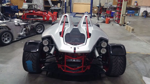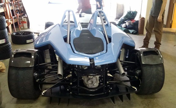 07/28/15 It's been a month since Pikes Peak and lots of things have happened in that time. I've been lagging in blog posts because it's enough work just making the things happen. I did get a few videos rendered and uploaded. Here's the multi-camera one, just search for the others. The Drakan Spyder production continues - we actually delivered the first (blue) car back in early June, before the race. Shinoo and Joe from Sector111 came up then to help complete the build and install the drivetrain. Now roller chassis #2 (red frame) is nearing completion and is scheduled to leave the shop Friday. After this one, 8 more to go in the current batch.