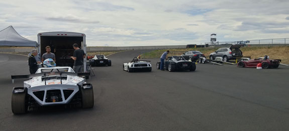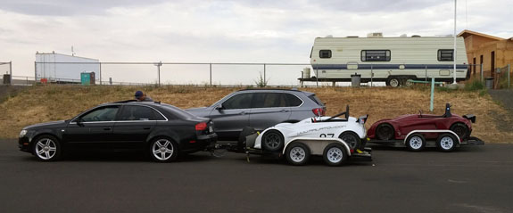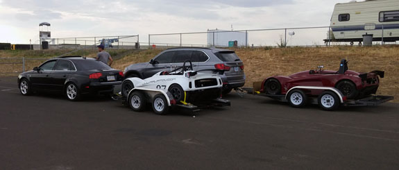 We got to test the D2RS with the boost controller unplugged, and then plugged in. Several useful things learned there. First, it confirmed that we would have done as well or better with just a regular D2 - lap time without boost was essentially identical to our demo D2 on same tires. We also confirmed the correlation or ORP lap times to Pikes Peak times which will be extremely valuable in testing for future events. With boost connected - yes, the car was several seconds faster but at sea level the extra power was overwhelming the well-used rear tires in less than a lap. We'll need a fresh set and probably in different compound to really push it. That'll happen at some point and we know the car is capable of overall record here, in street legal form including emissions. Jonathan trailered his D4 up from California and Neil brought his D1 on the newly built trailer (several good upgrades from the first one, we always keep evolving!). Dedicated track cars need not be inconvenient.