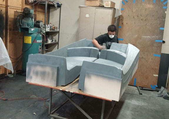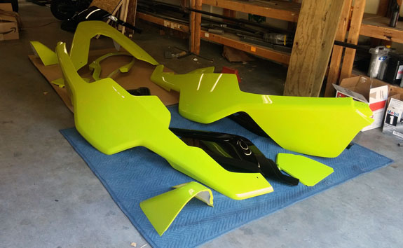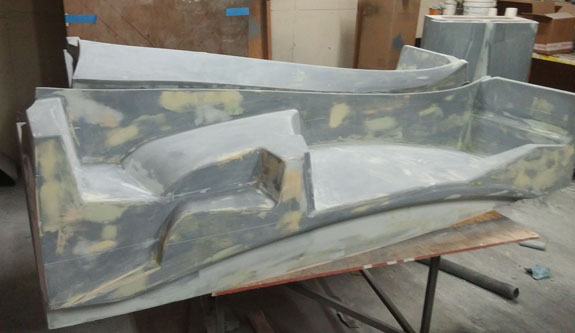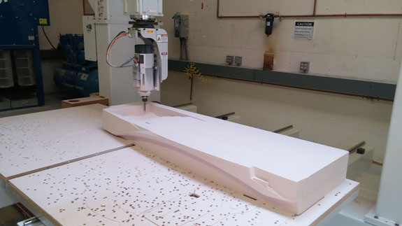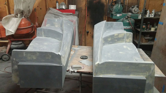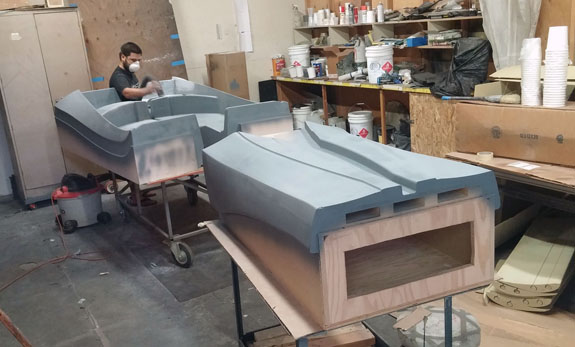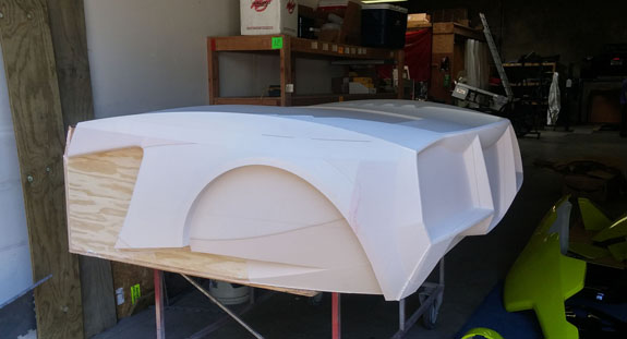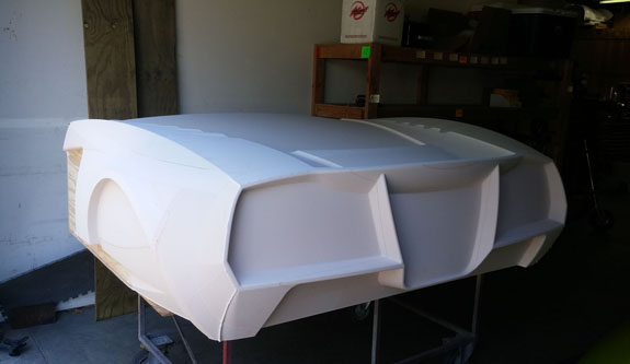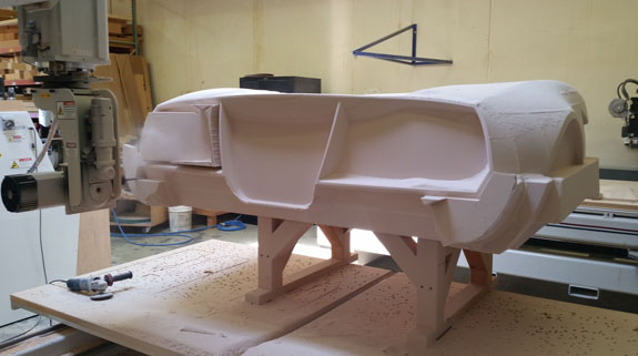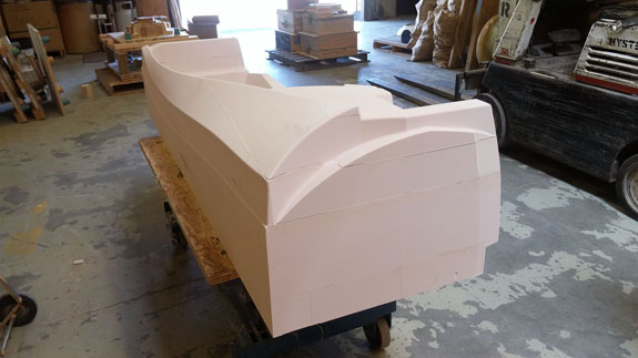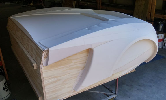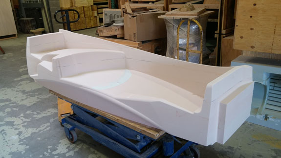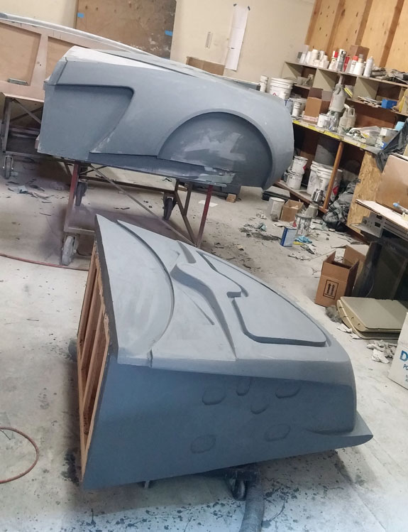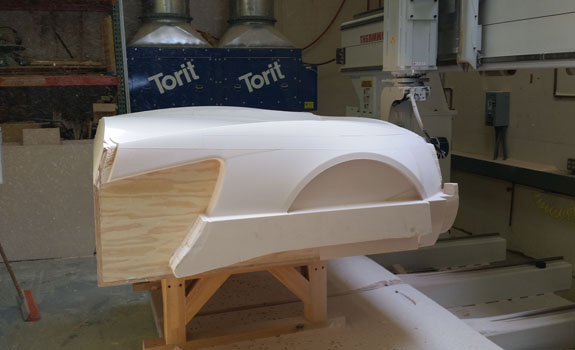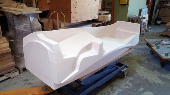 There are many other developments and I'll try to be more timely with the posts. Stay tuned. 8/19/15 Some good progress on plugs for the new D2 bodywork - the guys at Willamette Pattern are cranking them out! There are some unique methods we're trying that are working quite well. This stuff is still very much an art form even with all the technology, and hand finishing is still very much a part of the process (trying to minimize that though). The foam patterns are coming out perfectly and we're now applying and sanding several coats of Duratec primer.
