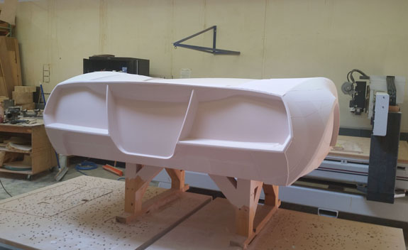 But there is some D2 specific stuff going on as well. Most of it revolves around the new bodywork. First, the bodywork itself - another plug is now machined (one more to go for roadster version, then coupe-specific parts later). Despite CNC machining there is still a lot of hand work and with the latest one we're experimenting with techniques to cut that down some. Going well so far.