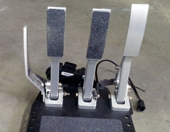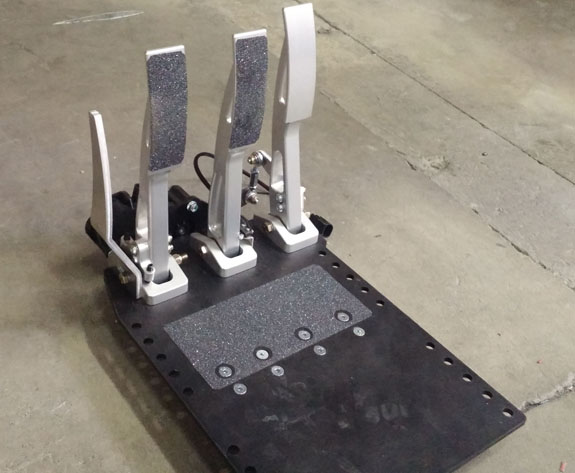 Three Drakans are done, two more are progressing rapidly. There are also several things that Drakan-specific development has produced, driven by requests from Sector 111, that has found its way back on the D2s. Reduced-caster front suspension is one, dead pedal is another. The latter is more challenging than might seem, since the pedals have 5" of adjustment range and the dead pedal has to travel with the rest. Below is a prototype that works pretty well.