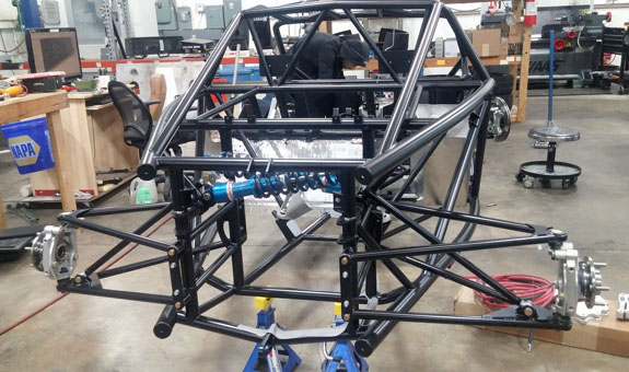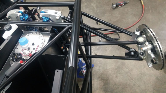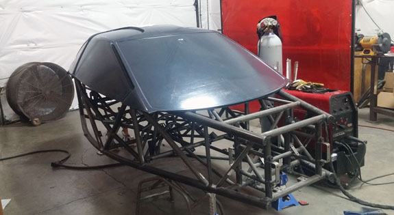 2/16/17 Long-overdue update. Several items: The bodywork is progressing. As part of that, we're updating the front and rear crush structures to the new design, since they now incorporate wing mount points. The old ones came off, and the new ones are built.