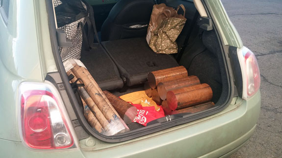 The first parts to be made are the longest-leadtime ones, due to the need to send them out for splining, then heat treat, then plating. It is the hubs themselves, made from high strength alloy steel. Each starts as a 47 lb billet and eventually becomes a ~4 lb part. The Fiat had its work cut out carrying 8 of the billets - like two big guys in the back seat!