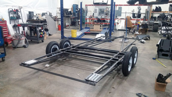 It should be on wheels later today, in a preliminary form, which is when we'll load a car and check tongue weight and overall fit. Should be fun. In other news we're moving some of the composites work inhouse. We've done it with lots of processes (machining, welding, etc.) and every time have been very glad we have. There is definitely a learning curve to it, but as I told Tristan there's no reason we can't be as good as anyone else, and better than many. We'll see. So far a few test pieces, a few lessons.