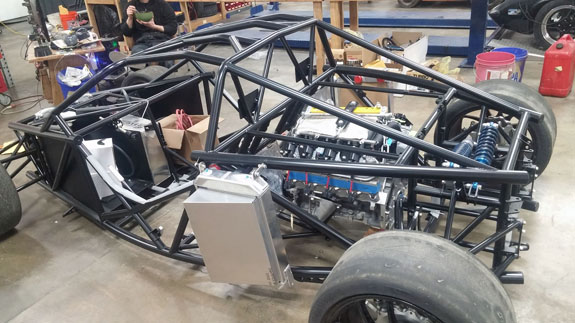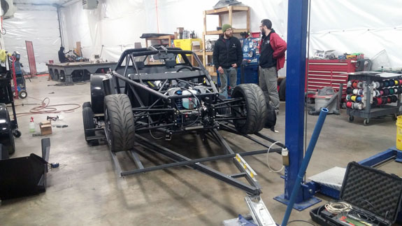Without any of the systems there is a surprising amount of room around the motor. That will change. In the meantime, I rather like how the car looks without bodywork. Keep thinking we should have a 'Raw' model, with just a simple nose and tail cap. Would be cheaper and lighter than full-bodied versions, and probably more effective as a trackday car. Kind of an equivalent to a 'streetfighter' bike.