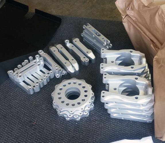 But we've nailed down a lot of variables already, this will get resolved too. I've been posting GTC upright progress here, since they can (and likely will) be D2 upgrades. We're now done with all machining. Aluminum parts are back from anodize, steel parts are at heat treat and will go to plating next. Corvette bearings have been modified for the drive pins.