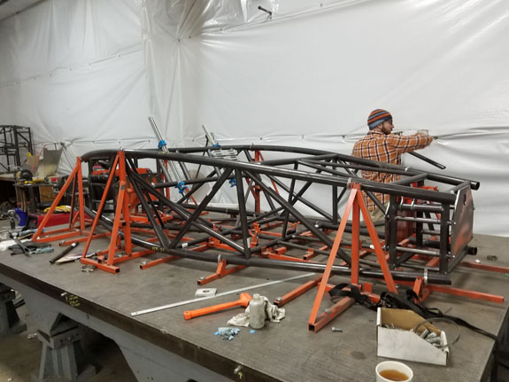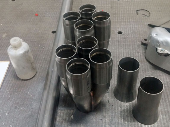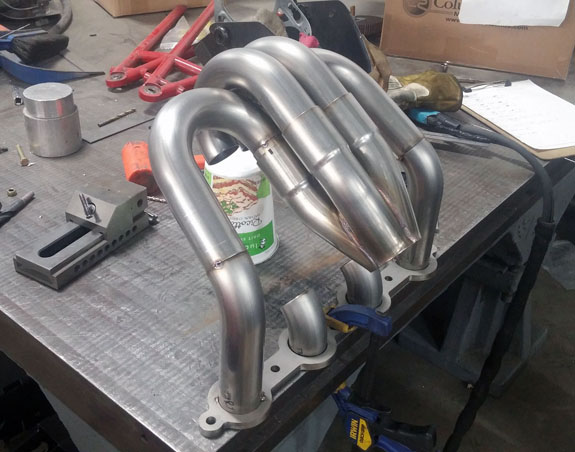 Of course this is only a fraction of what we're currently doing but enough for this blog entry. 04/25/17 The main (but not the only) scramble right now is to finish the D2TT build, since Pikes Peak is only two months away. We've been waiting for various parts such as exhaust collectors, but today they finally showed up. The first header is now tacked together.