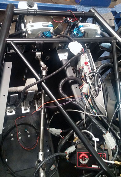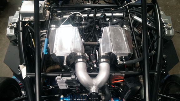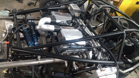And this is just the D2 stuff. There's a lot more happening. 05/25/17 Some major steps forward. Yesterday we finally fired up the twin turbo car. The complexity of all the systems adds up. From gearshift to turbos to cooling to oiling to suspension to wiring, and many more...