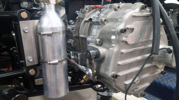 There is still a lot we are having to figure out on the fly. For example, the Mendeola S5R transmission is unique in having two shift actuators - one for forward gears, and a separate one for reverse. The forward stuff will be actuated by electronic paddle shift, the reverse will be manual. So all the mounts and even the reverse selector lever had to be designed and made.