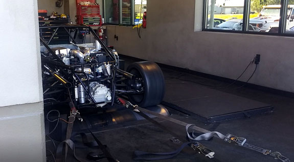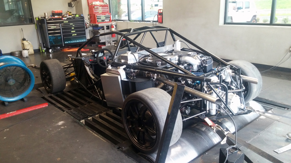 The car has to go up the Mountain in 10 days in testing so this is crunch time. The first start didn't happen easily - engine would crank but not fire. Lots of head scratching, lots of testing. Finally at some late hour Jay found the issue - the wiring 'pigtail' we bought for the cam sensor had two wires swapped. Simple fix and now it runs. Time to tune it. Portland Speed Industries is our go-to tuner and they do a great job. Despite being booked solid they made time for us at 7:30 in the morning to see where this beast is at. As mentioned before, we're not looking for crazy power - about 600 at the wheels (700 at the crank). The challenge is that we have to make that at 14,000 feet and have it be very tractable.