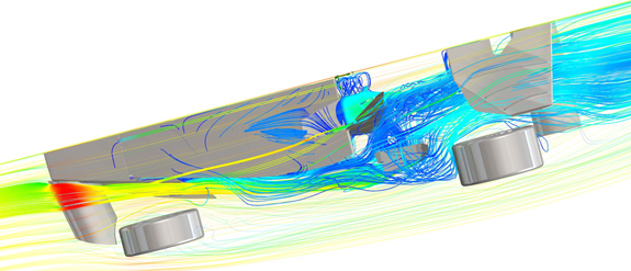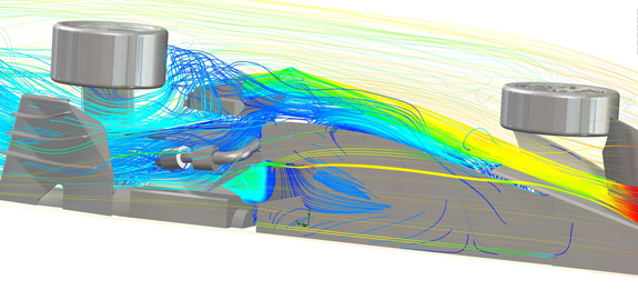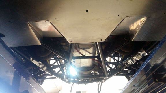 A few mild pulls and the engine is working better. Then at about 575 rwhp we ran into an issue - what appears to be dropping fuel pressure. Last year's LSA motor put out 550 at the wheels and was fine. We are using a Walbro 255 fuel pump. We kind of expected that it would be close, and it doesn't come as a big surprise that its capacity is exceeded. So we have to swithch to the 400 model. Also the shifter needs work and a few other issues need addressing as well. But the good thing is that nothing leaked (thanks to Tristan taking care of all of it beforehand) and nothing broke. So the rest of the day was spent procuring and installing the new fuel pump, tweaking the shifter, and making a few other changes. One of them is adding ducts in the floor for better airflow. A while back I ran some CFD in SolidWorks Simulation and after several iterations found a configuration that should really help.