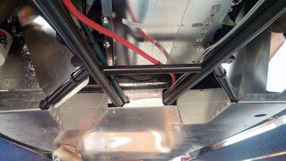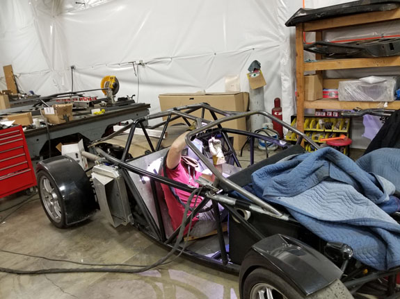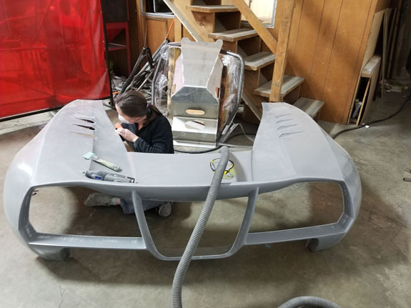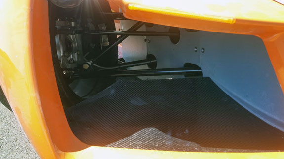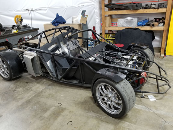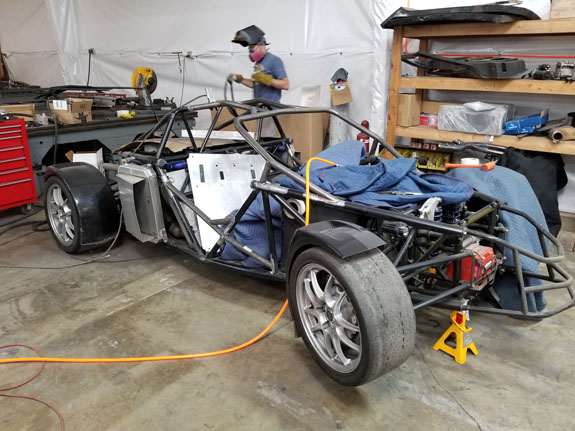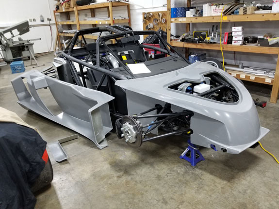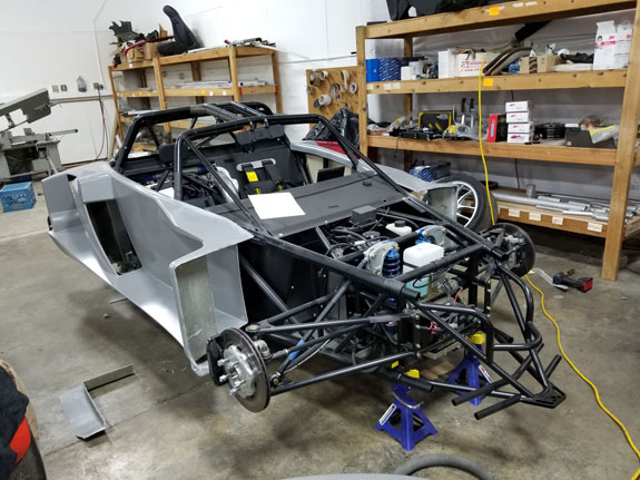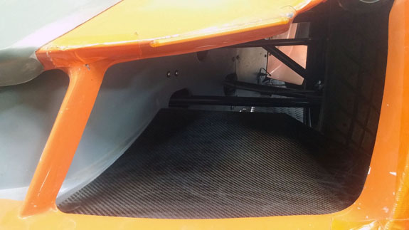 After working out a few installation details, the fit is good and the tire clearance with wheels turned is adequate. Rear wing mount was updated as well. And Mark finished the floor updates.