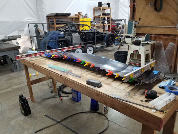 We are always pushing to improve what we do and learn. This car represents a multitude of significant steps forward, which wll be incorporated in all our future builds. The front wing is one of those things. It was designed some time ago, and skins were made a while back as well, but we hadn't put one together until now. Maika got to practice his composites skills.