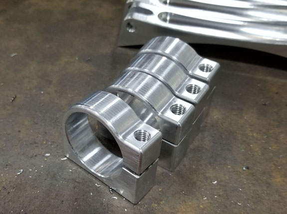 The mounts took a couple iterations as well. This first set of clamps didn't work well, so everyone at the shop got a paper-weight souvenir.