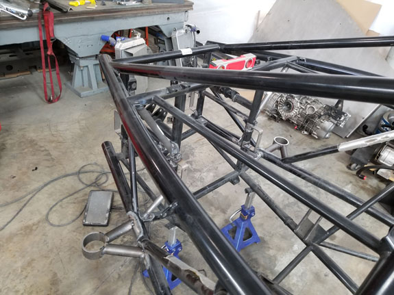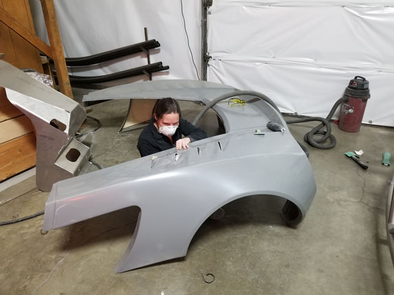 Now this particular frame can go to powdercoat. There are others in progress as well. The new bodywork is coming along, albeit slower than we'd like due to a number of factors. The first set of roadster panels is made and getting trimmed. It's a labor-intensive task, especially the first time through when we're still trying to figure out the exact details and processes.
