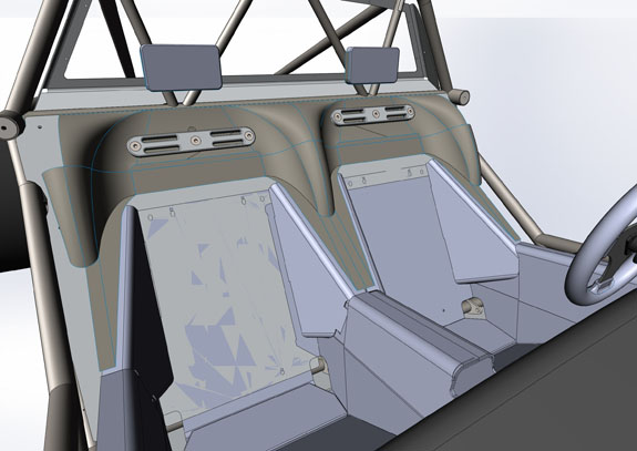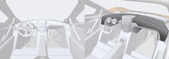While the Pikes Peak car will stay a raw 'roadster', this one will be the first to get the coupe bodywork, HVAC and upgraded interior. We're working on some concepts - these are just initial sketches, courtesy of Joshua Gore: