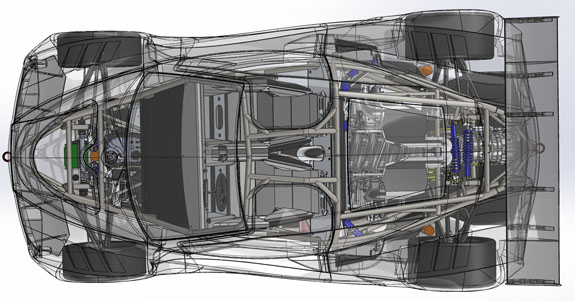 The chassis and the drivetrain are brand new, but this car gets to wear 'old' clothes - our prototype bodywork that was on last year's supercharged D2RS. That chassis will get many updates and all-new coupe body, interior, HVAC, etc. With the body on and last year's vinyl still on it, the car looks the same. But it's only in appearance.