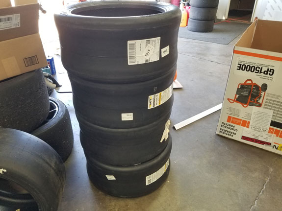 7/23/19 Time is running short. The tech people have some big concerns about the rollcage and other items based on pictures. Turns out a couple of tech inspectors live near Portland and are willing to come by the shop to take a first-hand look and provide feedback. Great! We set that up for the 28th. In the meantime tires show up. It's interesting how they are 'concave', must be due to whatever is necessary to keep them from expanding at high speeds. They are rated for 450mph.