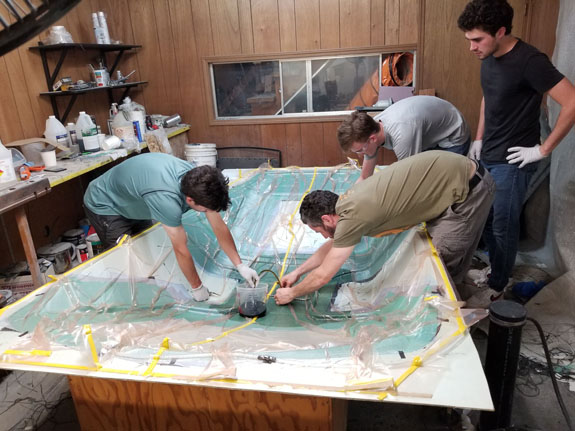 In the meantime we pull the diffs and swap gearing, then reinstall them. As I mentioned there are two cars, code named C1 and C2. Each has its own battery pack (P1 and P2, predictably). C1 is the race car - it ran Pikes Peak and will run Bonneville. C2 is a general demo vehicle and we work on it when schedule allows. Hower P1 had an issue with some of the cells and needed to go back to EVDrive for diagnostics/repair, so we had to fit yet-untried P2 to C1 for the event. This means we should really dyno it and see how much it heats up delivering full power for 45-60 seconds. 7/19/19 In order to fit lexan windows we need to drill through the canopy for the retaining bolts. The current one doesn't have enough of a lip to do that, so we have to make a new one just for this race (and upper door skins too). The plan is to have the full door operational and latching. I start figuring out how to make that happen. Our two summer interns are getting direct experience in everything from CNC machining to composites.