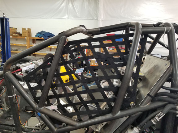 Parachute and window net ordered from Stroud Safety, they are custom built and will be done in about a week. 7/28/19 With only 9 days to go until we are scheduled to leave for Utah, tech inspectors stop by. The list of what they want changed is daunting, neither of them seems to think we can get it done. Major rollcage reinforcement, steel hoops on driveshafts, extra paneling. The left side of seat head restraint is not sufficient, it needs to go forward to the front of the helmet but only goes half way. Yet it already makes entry/exit very difficult, extending it would make it impossible. If it's made to be movable, it needs to lock in place securely and be releasable by the driver. Driver has to demonstrate unassisted exit from the car wearing full safety gear. But, we're committed. I have some design work to do and the guys a bit of fabrication. Takes me a couple hours to crank out cage mods and get the drawings detailed to have VR3 make the tubes. They confirm the tubes can be made and shipped for monday delivery. Getting in and out will be tight but doable, based on a quick mockup of the changes. This of course is without bodywork.