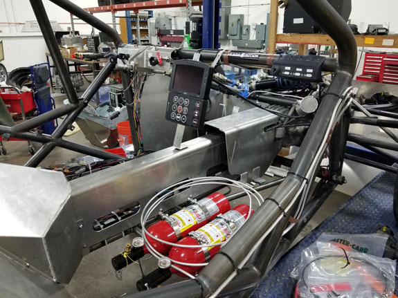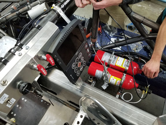 Our fire system is 10 lb (more on that later), so to get to 11 we simply mount two of them. Cleared by tech.
