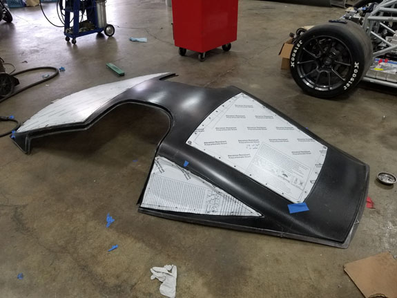 A few interior panels are being fabricated. Parachute mount is now done and bodywork is being installed.