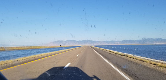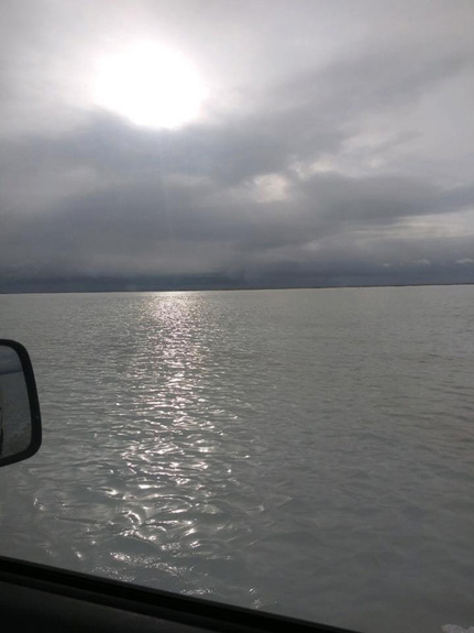 By the time our turn comes up it is mid-afternoon and course conditions are bad. We are told to stay out of the middle because it's slushy and rutted, and stay as close to the cones as we can. Mile 3-4 is in the best condition, but we are not approved to go the full 4 miles yet. After some discussion we get a waiver because it's likely the only run we'll be able to make today. We do our usual preflight - belts, restraints, net, door latched. Greg takes off and even before we get a chance to follow him in the van the door pops open. Parachute is out shortly after. Bummer. Greg said that shortly after the door popped the car started going sideways and he pulled the chute which straightened it right out. We look at the latch and it appears to engage, but now seems to pop off with even moderate pressure. We are certain it was checked on the starting line. Some cleaning and adjustment and it's functional again. We discuss whether to run again today or try early tomorrow morning. Conditions are already bad and only getting worse, so we opt for the latter hoping the morning will be better. My key concern is that the car is wide at 81" and wheelbase is relatively short at 104". The middle of the course is slush and we have to run off to the side. If one side hits slush while the other is on solid salt it's going to want to spin, and after thinking about it I'm pretty certain that's what happened on this last run (initial thought was that it was due to aero change from the door). In the evening we keep checking for any announcements from SCTA. The one that comes through is not good - the course conditions deteriorated further and only the competitors who qualified for a record today will be allowed to run so they can validate the records. We still plan to show up early and maybe beg our way in to a run. 8/16/19 We are on the salt at 6:30 am. Good opportunity to roll out the car and get some cool pictures. Unfortunately the answer is no - we will not be allowed to run today. Disappointing, but after some discussion we decide to come back for World Finals in october. So the adventure will continue, and maybe I'll finally figure out the doors by then! 10/15/19 The weather looked great for World Finals at Bonneville, right up until two days before the event. Which is when the skies opened up and the lake became, well, a lake. Picture below from event organizers.