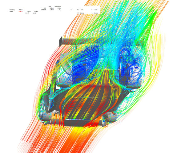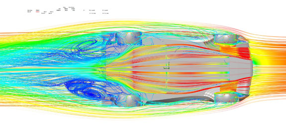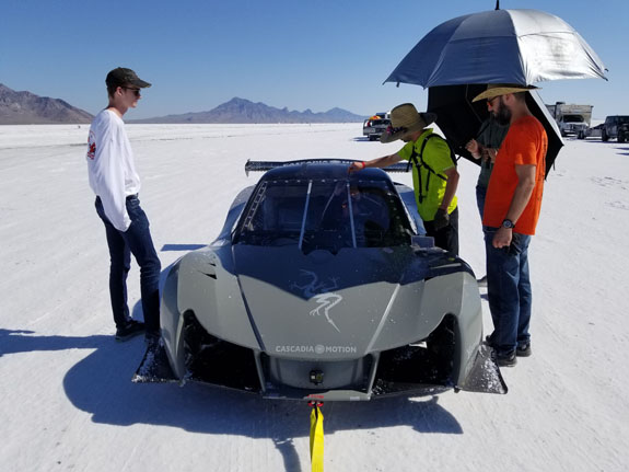 Below is the record of the events reconstructed from dates on the pictures and other clues. As an indication of how crazy the whole thing was, I had to look up official run logs to figure out on which days the runs took place, and correct the blog as I wrote it. 07/10/19 A bit over week since Pikes Peak and a month till Bonneville. We now need to decide if we are actually going to do this, and what it's going to take. If we change the gearing in the diffs to 3:1 (from 5:1), the car will be capable of theoretical top speed of 265mph. We have the power to do it - my many CFD runs at that speed show that our ~1,300 hp is about what it would take. Aero stability is the big unknown. We know we'll have to keep the wings but can set them flat to reduce drag while still providing some downforce - about 2,000 lb total biased towards the rear to roughly match weight distribution.