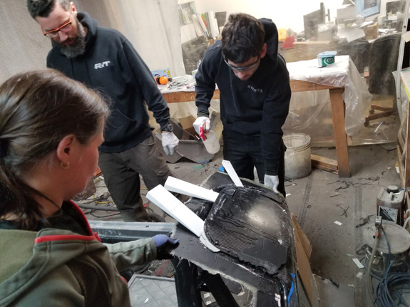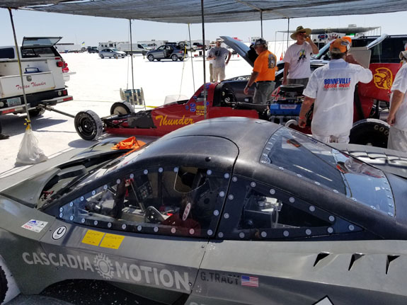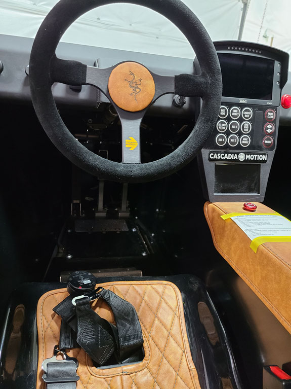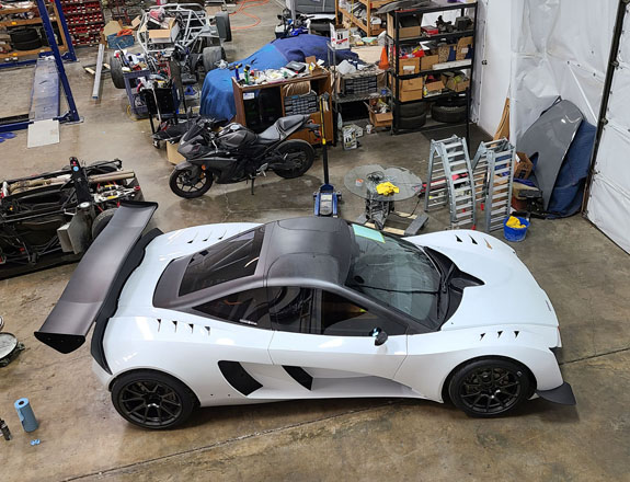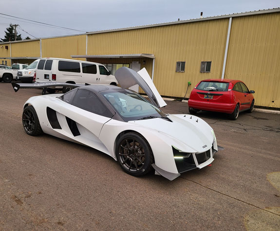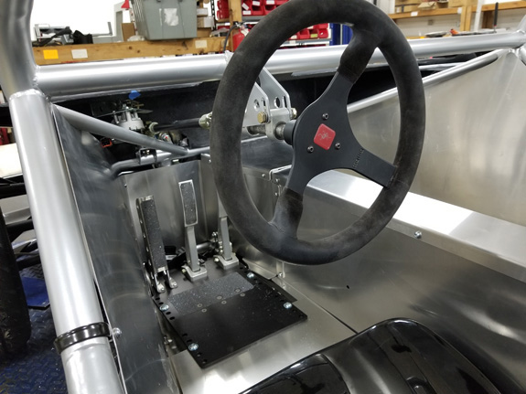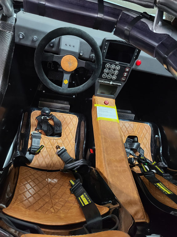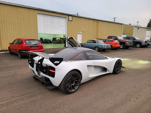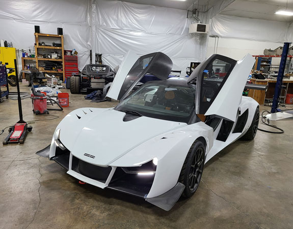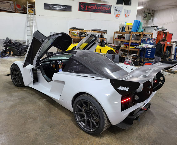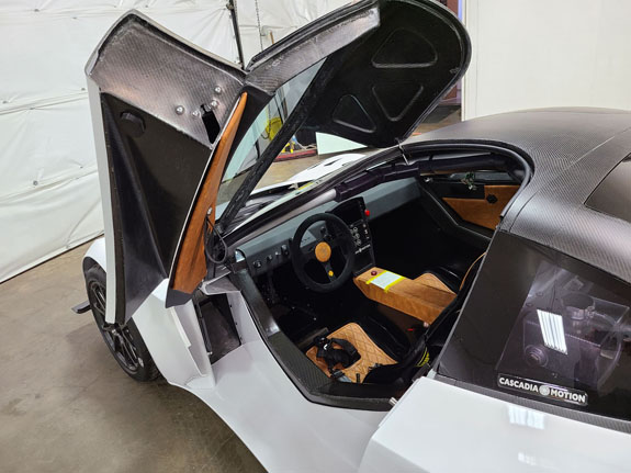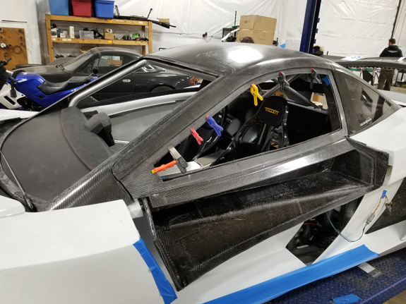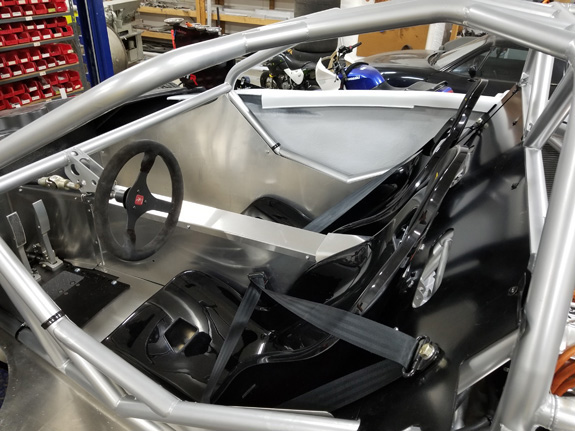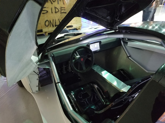 12/25/19 After realizing (later than we should have) that we are not going to do any more high speed attempts with the D2EV, focus has shifted to converting Car 1 to street use, finishing it and Car 2, and delivering both to the customer. A massive amount of work remains in that regard and the fact that we essentially lost 2 months trying to figure out where to run top speed next has set us back some. No matter, on we march. The next deadline was the PRI show in Indianapolis, where C1 was invited to do 'booth girl' duty. The original intent was to fully finish the car and have it continue to Detroit for its next life, but it quickly became apparent that it's not going to happen - just too much to do in too short a time. The doors continue to be the biggest challenge and obstacle. As a company we simply have no direct experience in doing that yet, so everything has to be figured out, tested, then figured out and tested again. People have been building cars with doors for over a century so it's clearly not an impossible task, it's just a steep learning curve for us, amid all kinds of other challenges. But it's coming along.