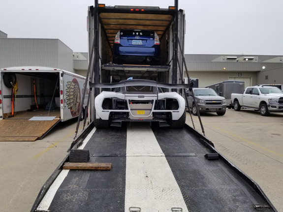 12/5/20 A major milestone for us: D2EV 'Car 1' has been completed, loaded on the transport and is on her way to her future home in Michigan. It took 9 months from first concepts to a drivable chassis, even though not a single tube (literally) is shared with the D2, nor a single piece of the drivetrain or suspension. They do share most bodywork panels, but that's it. Completely different cars underneath - the D2EV was designed to be AWD electric whereas the original D2 is RWD and gas powered.