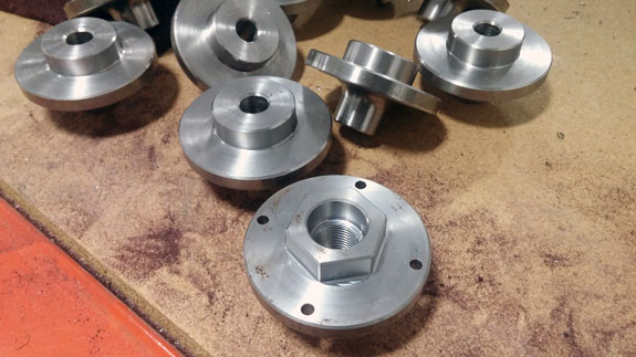01/11/17 A lot of parts go into a car. We now have over 4,500 part numbers in the system, more than half of which are custom. And that means we get to make them. So that's what we've been doing lately - from little things we call 'CV Eliminators' (they hold the bearing together on undriven axles with some of our uprights, where there is no CV stub to do that), to pedals, and countless other bits. Most are made on our CNC lathe and mill - some on one, some on the other, and some on both.