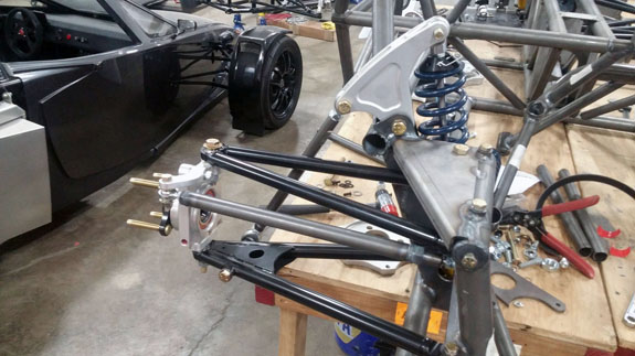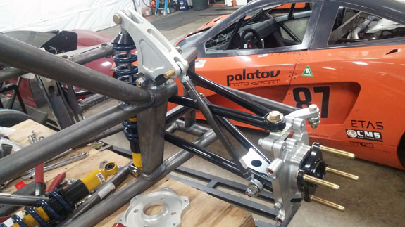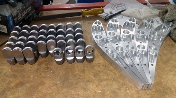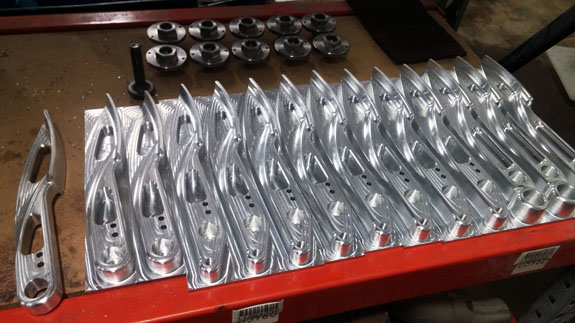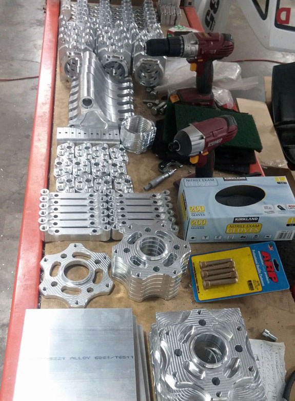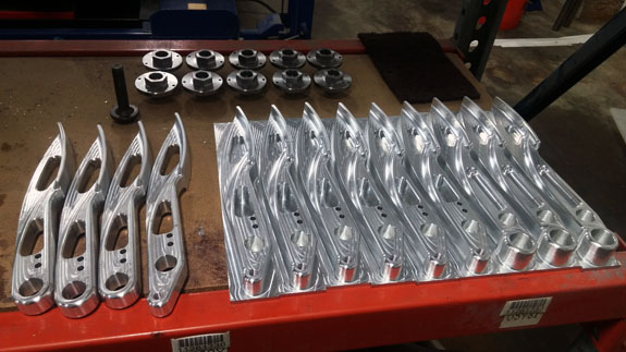 The engine is now back out of the car and off to the dyno for tuning. Some more machining got done as well, including rear bellcranks and brake hats that are specific to the D47. They're off to anodize now.
