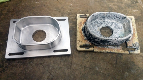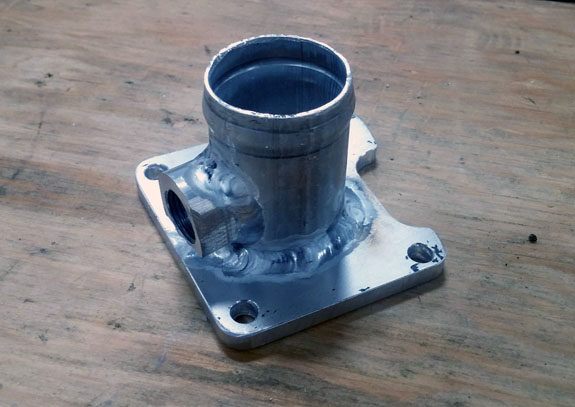 Then there are one-off parts specific to this particular car, which we're not likely to make again - so those are more efficiently hand made. This one still needs to be cleaned up a bit. It's a coolant fitting for the Ford Duratec engine, replacing a factory part that interferes with the exhaust header. We are also making a custom alternator bracket but that one has to be laser-cut and then welded due to shape and size.