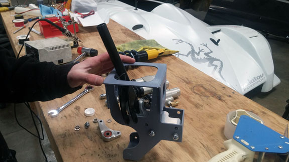 Jay has been doing more of the design tasks and the shifter mount is next on his list. He has been making good use of his 3D printer to prototype various things (more on that in other blogs soon).
